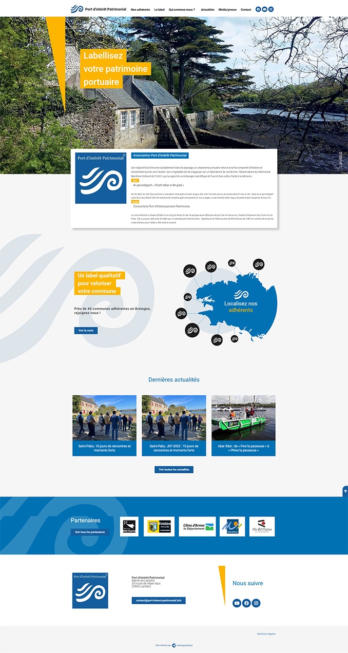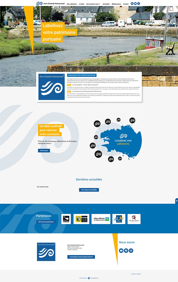 Labellisez votre patrimoine portuaire ! C'est le cri du coeur de cette association. C'est un site portail épuré, pratique, où les photos sont aussi importantes que les explications techniques de chaque commune adhérente (ou labellisée). Notre équipe a mis en place une gestion des fiches assez souple pour que chaque adhérent puisse mettre en avant ses atouts, ses objectifs, ses motivations, à l'aide de liens, de vidéo, de galerie photos...