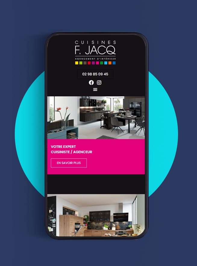 Notre agence gère la communication digitale de l'entreprise Cuisines Jacq depuis 2012. D'abord sous la direction d'Audrey Jacq, avec un site catalogue ouvert sur diverses activités (dont l'ameublement). 10 ans après, sous la direction de Guillaume Nicolas, avec un site recentré sur l'agencement : cuisines, salles de bains, dressings ... Un site design, épuré, pratique.